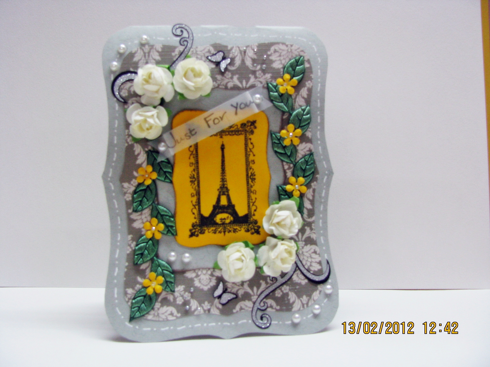 I had Chosen the first Line i.e.Lace,Brad and Flower......And this Time too I have gone with the Same Combo...As you can See I have done Quilling Again and also have Used Punched Laces and Diecuts for the Hearts and the Letters...
