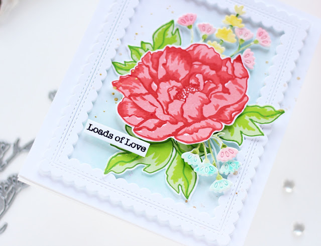 I hope you liked my floral shaker card and thank you so much for stopping by today. A huge thank you to Sunshine and Arjita at Waffle Flower for inviting me as guest designer and making me feel very welcome!
